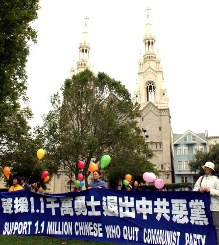 法轮功学员和北加州退党服务中心在旧金山中国城华盛顿广场举行活动庆祝一千一百万勇士退出中共恶党2006-6-10