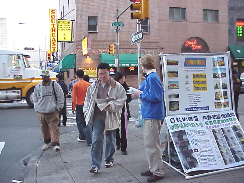 大费城法轮功学员在唐人街烛光守夜, 纪念4.25和平上访三周年 2002-04-25