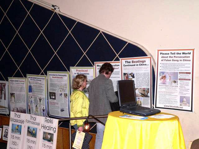挪威法轮功学员应邀参加首都奥斯陆的健康博览会,介绍法轮功,及中共邪党对法轮功的残酷镇压