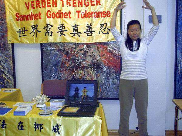 挪威法轮功学员参加健康展览会洪法及讲真相