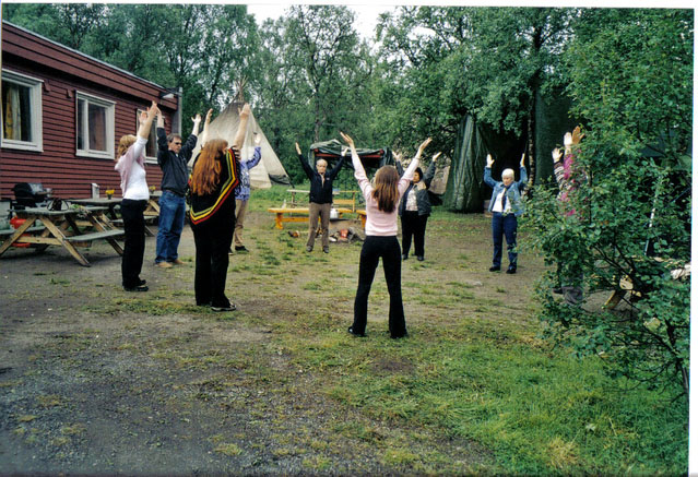 两位欧洲法轮功学员前往北挪威讲真相 图为在健康博览会上教人炼功