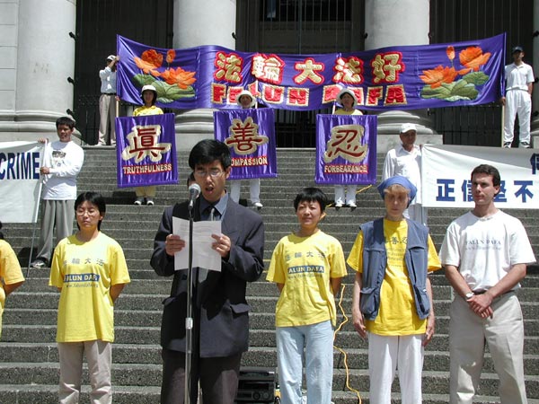 在江氏集团迫害法轮功4周年之际,温哥华法轮功学员举行新闻发布会,吁公审江泽民 2004-07-20