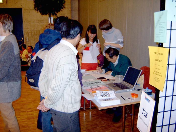瑞士法轮功学员参加弗赖堡健康博览会介绍法轮功,观众100多人踊跃报名参加免费班学习功法 瑞士 2002-11