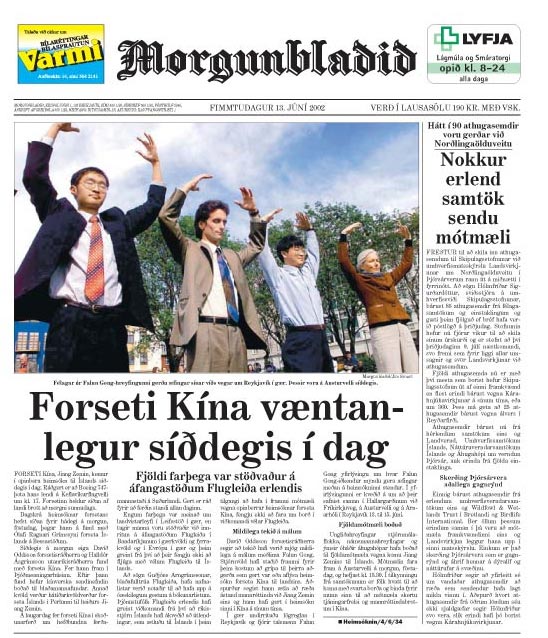 冰岛最大报纸莫干布拉迪日报(Morgunbladid)对法轮功的报道