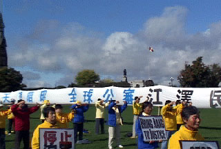 促总理维护人权 加法轮功学员国会前公审江××