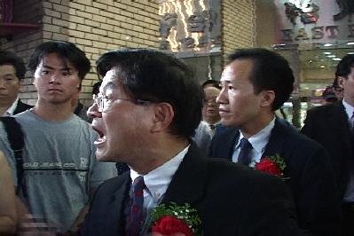 梁冠军和花俊雄在现场密谋, 指挥围攻法轮功学员 梁冠军和花俊雄在现场密谋, 指挥围攻法轮功学员