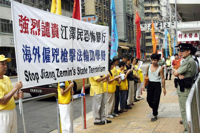 香港法轮功学员中联办静坐 抗议江罗集团南非恐怖枪击