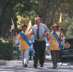 加州顶峰报:为自由而步行---吉尔罗伊市长斯普林格支持SOS步行法轮功学员