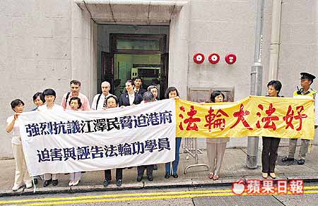 苹果日报:声援被控阻街袭警港学员 全球法轮功学员轰炸港府