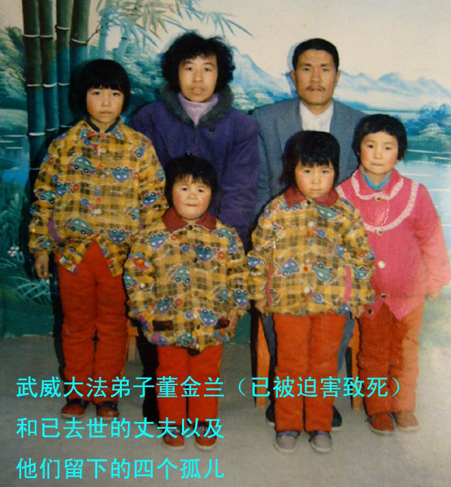 董金兰(甘肃武威地区)于2006年被当地邪党组织及610迫害致死。图为董金兰和已经去世的丈夫以及他们留下的4个孤儿