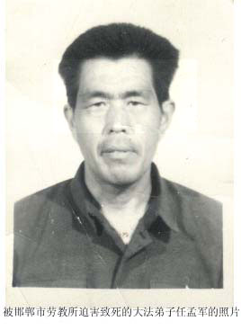 任孟军(河北)于2001年10月29日被邯郸市劳教所酷刑折磨致死。终年56岁