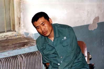 刘成军(吉林)被吉林恶警酷刑折磨后已无法保持正常坐姿(2002年4月1日中新网图片)