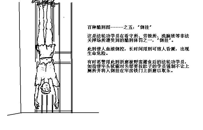 酷刑图示:“倒挂”此刑使人血液倒控,长时间受刑致昏厥,生命危险