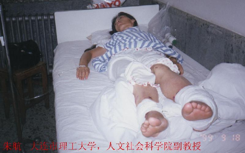 朱航(大连),大连市理工大学副教授,99年被大连市姚家看守所酷刑折磨致遍体鳞伤,精神失常