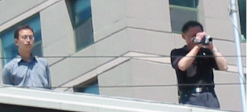 2003年6月25日,芝加哥中领馆前和平请愿的学员,被爬上屋顶的领馆人员非法录像