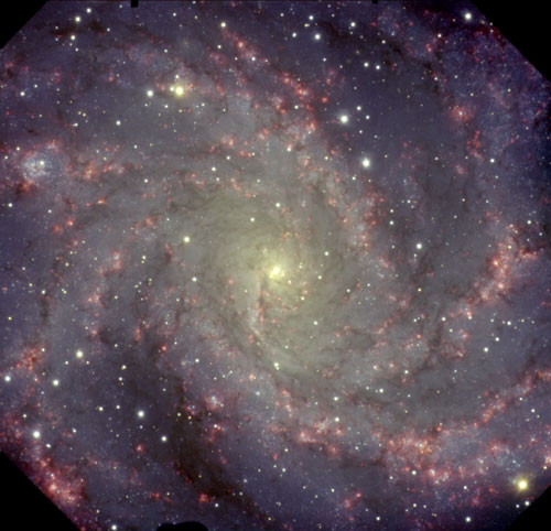 新近拍摄到的螺旋状星系NGC 6946闪耀着五彩的巨大焰火 据称是超新星爆发形成