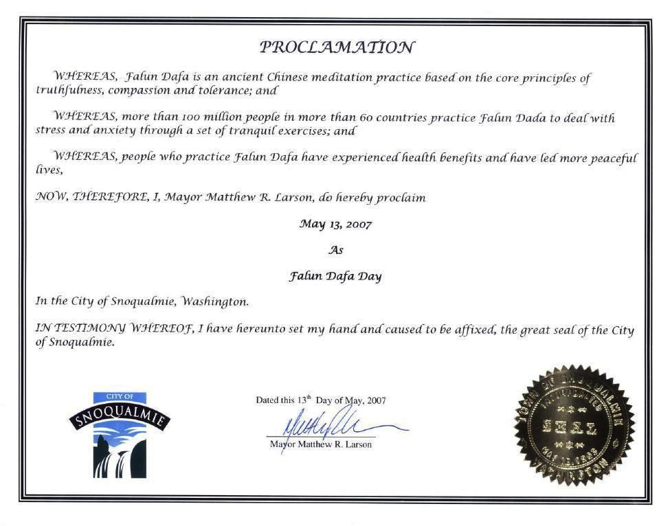 华盛顿州斯诺阔米市大法日褒奖大法 2007-5-12