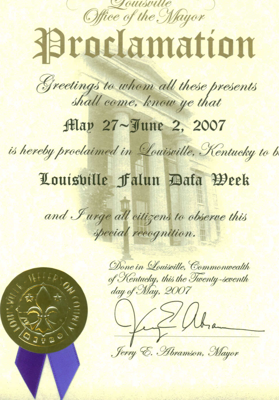 肯德基州露易斯维尔市宣布“法轮大法周” 2007-5-13