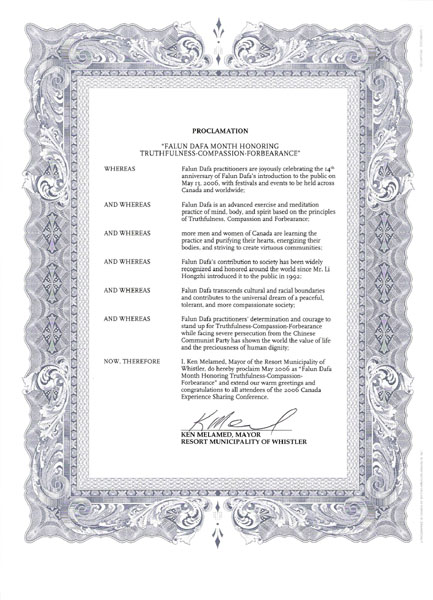 加拿大威斯特勒市宣布2006年5月为“法轮大法月