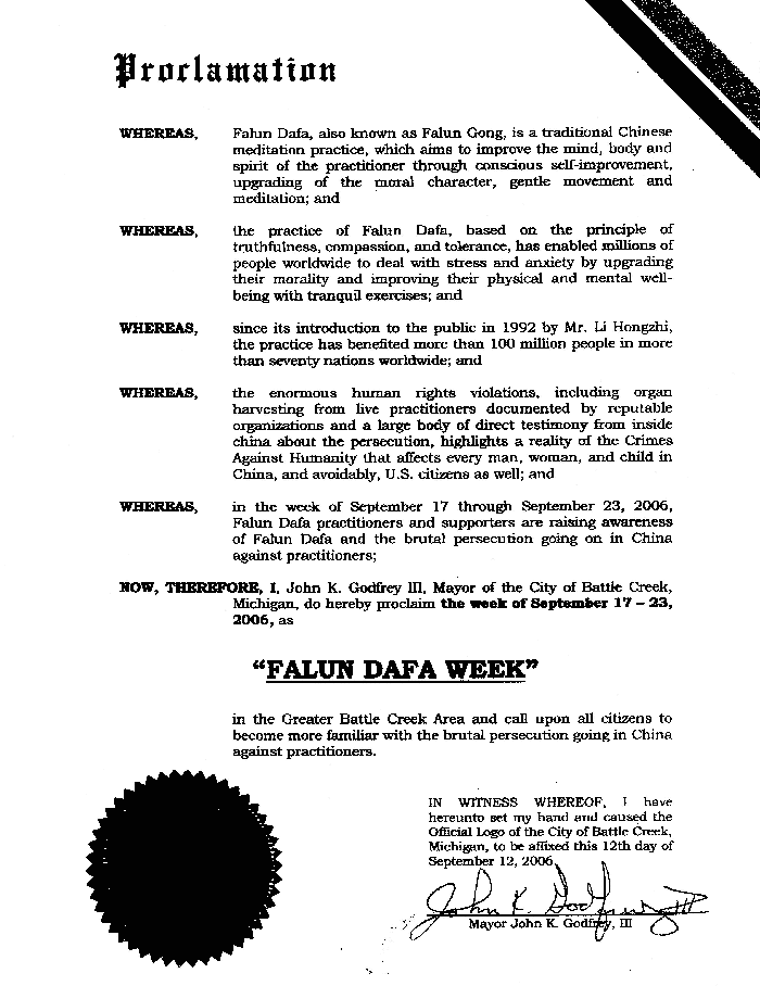 美国密西根州百投溪市褒奖法轮大法周 2006-9-12