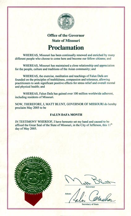 美国密苏里州州长宣布法轮大法月