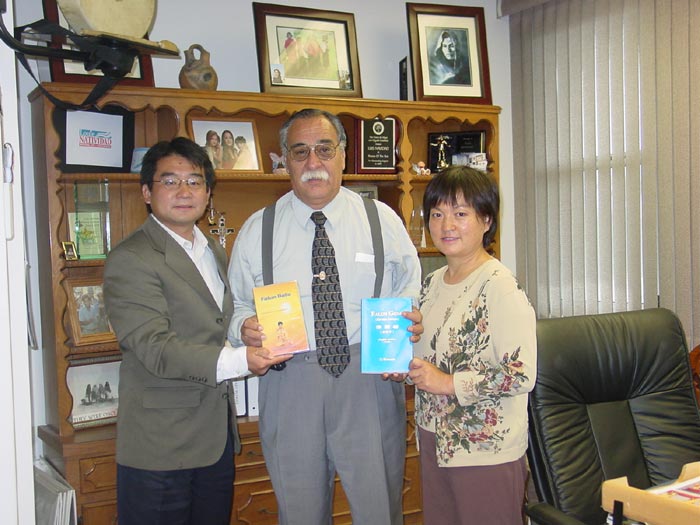 加州南圣地亚哥郡庆祝“大法周”活动中市议员接受法轮大法书籍和录象带 美国 加州 2004-5-29